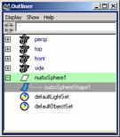 圖 2-24 outliner 窗口 圖 2-25 顯示球體外形節點