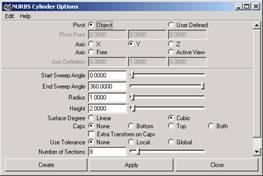 如果想恢復(fù)初始的默認(rèn)值,可以在 nurbs cylinder options 窗口中,選擇 edit ® reset settings 命令。