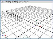 (2) 在 maya 界面右側的 channel 面板中,更改 x 、 y 、 z 的值分別為– 6 、 0 和 0.5 ,這 3 個值是用來控制物體的坐標值。然后更改 scale x 、 scale y 和 scale z 的值分別為 5 , 0.5 , 1 ,這 3 個值可以用來控制物體的縮放比例,得到如圖 3-31 所示的一個長方體。