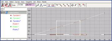 當在 timeline 中創建一系列的關鍵幀時,在 graph editor 中這些關鍵幀就代表功能曲線或動畫曲線, graph editor 像一個普通的正交窗口一樣工作,因此可以用如 a 和 f 熱鍵來瀏覽功能曲線,用 alt+ 鼠標中鍵拖動方法進行跟蹤,也可用 ctrl+alt+ 鼠標左鍵或用鼠標中鍵框選方法縮放視圖。不過,當 graph editor 是激活的窗口時,對 move 和 scale 工具的設置就會發生重要的變化。
