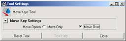 (6) 使用 move 工具改變在 graph editor 窗口中的選項。既可以雙擊 layer 條上的 move 工具圖標,也可以選擇 modify → transformation tools → move tool □命令打開該對話框。在 graph editor 窗口中單擊以保證圖形編輯窗口被激活,然后就會看到該選項發生變化,如圖 12-12 所示, move option 選項組包括 moveonly 和 moveover 單選按鈕。默認選擇 move over 單選按鈕允許移動被選的關鍵幀到其他關鍵幀上;如果選擇 move only 單選按鈕則只允許在其他關鍵幀間移動關鍵幀。