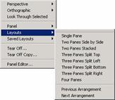 雖然普通視圖布局是非常有用的,但可存儲布局在某些場合也普遍使用。要進入可存儲布局,可以選擇 panels → saved layouts 命令,然后在其子菜單中選擇一個可存儲布局,如圖 1-17 所示。