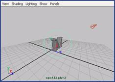 (2) 重復(fù)步驟 1 ,建立另一盞聚光燈,如圖 9-7 所示。這種設(shè)置燈光的方法非常方便而又簡(jiǎn)捷,用不著去仔細(xì)調(diào)整。