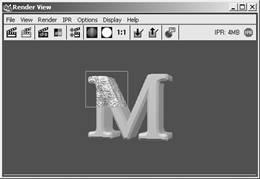 (1) 打開 render view 窗口,在視圖中調整聚光燈直到對其照射的字母 m 滿意為止。當正確地給字母加上陰影后,回到該視圖再仔細調整燈光。