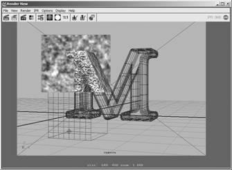 (3) 因為背景紋理沒有在 ipr 里顯示,因而需要給該選項組渲染,測試該紋理是否與字母 m 匹配。調整該小紋理的 color gain , offset 及 placement 屬性,所得的圖形如圖 9-19 所示。