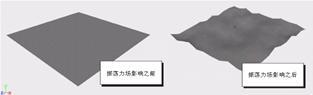 振蕩力場可以使被影響的物體產(chǎn)生不規(guī)則的噪波效果,如圖 10-57 所示。利用它可以模擬自然界中某些液態(tài)或者氣態(tài) ( 如空氣和水 ) 無規(guī)則的運(yùn)動(dòng)狀態(tài)。