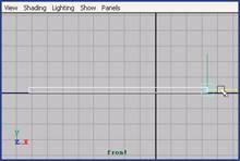 (1) 創建一個新場景。創建一個與柵格大小相當的 nurbs 平面。再創建一個長方體,將其平放在 x 軸上,然后將其壓扁成一個平板,如圖 11-10 所示。