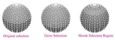 執行 polygons → selection 命令,可以看到選擇工具子菜單, grow selection region 命令使選定的組件增加一個單元; shrink selection region 命令則相反; select selection boundary 命令只選中所選組件的邊界而不選其余的,如圖 5-24 所示。