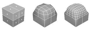 smooth 命令很簡單但又不可缺少,工作中會經常用到它。 polygons → smooth 命令可細分一個表面,或細分表面的選定面。按照選項框里的細分設置 ( 系統默認的設置為 1) 可以建立一個光滑的表面。與 subdivide 命令不同,實際上它是通過移動頂點來使表面更光滑,如圖 5-41 所示。默認時它通常產生的是四邊形。如果要多次使用 smooth 命令,在再次使用它之前一般都要調整一下表面。在后面將看到 smooth 的功能。