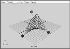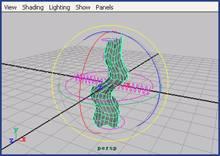 與網格變形或群集變形一樣,每一個非線性功能都只能變形物體的被選點。它們也能變形多個物體且保持塊間的相切。變形沿著軸線開始和結束,在默認的情況下,是沿著被變形物體的局部 y 軸從– 1 開始到 1 處結束,并自動變形適配物體。可用控制器句柄交互地調節變形屬性,在 channel 盒的 input 區域選擇變形器,打開建模窗口,按 t 鍵顯示 show manipulator 選項。