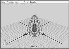 (3) 選取 nurbs 平面,然后選取圓錐體組,最后執行 deform → create wrap 命令,創建 wrap 變形。