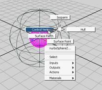 (4) 選取第 2 個球體,右擊從標記菜單中選擇 control vertex 命令,如圖 14-28 所示。