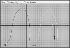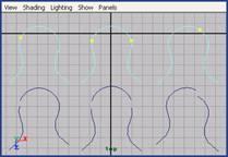 首先制作出曲線,生成如圖 4-24 所示的兩條 cv 曲線,按住 x 鍵并單擊把它們捕捉到刪格,然后把它們復制并平移到一邊。