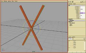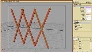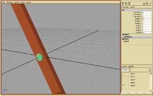 1 .首先創建一個多邊形立方體,取名 b1 ,作為第一條桿,長、寬、高分別為 0.4 、 10.1 、 0.2 。把它從 z 軸旋轉一點角度。