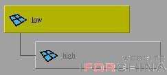 將 " high " 選取 , 并 parent 于 " low " 之下 .