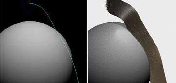 方法 3 用參照曲線實現對頭發的動態控制,但是產生的曲線和參考曲線之間的距離可能會導致曲線的精確度出問題。