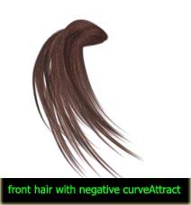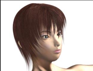 選擇 hair_front_brush ,打開屬性面板,將 tubesperstep=10 調低一些,提高寬度值,降低 segments 到 24 。打開 behavior|forces 面板, curveattract = -0.041 (使頭發與控制曲線的位置有一些偏離,而不是很多頭發緊緊粘在一根控制曲線上)。選擇 hair_side_brush ,將 curveattract 設為 -0.050 ?,F在你的頭發看起來更自然了。另外在 stroke 調整 seed 值,在 brush/tubes/creation 調整 tube rand 值,為頭發增添更多的隨機變化。