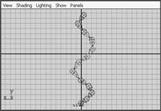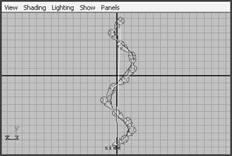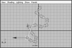 (1) 在側視圖中建立一個關節鏈,如圖 13-22 所示。對于 ik spline 手柄,關節不必作成一定的角度,但骨頭應該短一些,以確保鏈會平滑地移動。