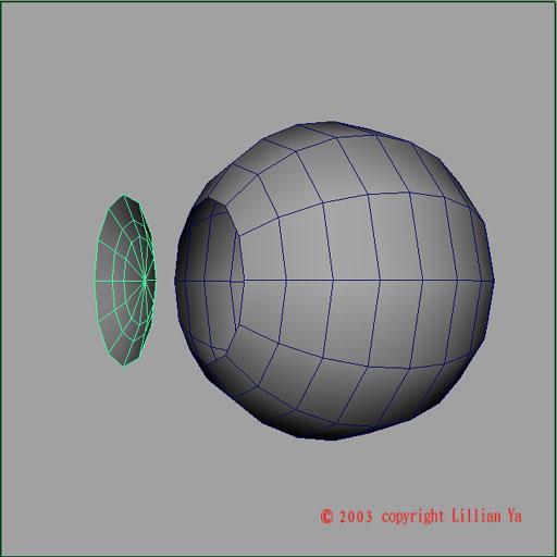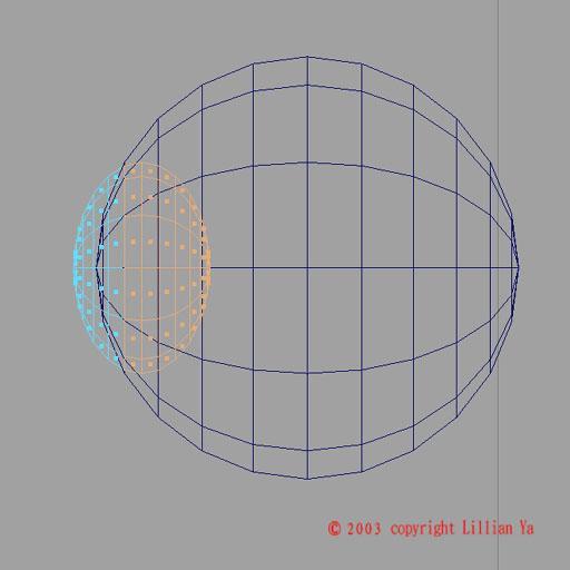 2. 將比較小又扁的球體放至在大的球體的前方。因為眼睛最表層處是角膜。