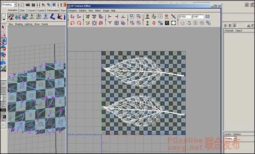 17. 觀察并調整葉子 uv ,在透視圖上看到葉子的黑白方格圖紋沒拉伸后,然后把兩片葉子拉到 0-1 空間里面。