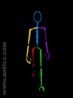 我們首先需要的是一個角色。這堂課上我們將用到 mr.stickman. 一般來說下面我們將需要簡單而又清晰的一個方法。我收集的這些大多數是來自叫 richard williams 的 ”the animator's from richard” 一書。我們將用到 pose to pose 方法。我們以 24fps 運動,每步 12 楨。這主要是中間的步幅。和你想象相反的是,這是走路的一小部分。后面將會接觸到更多。下在我們把精力放在這個動作上。在第一楨向前移動角色每一部分。確保下圖前腿顯示的范圍是直的。這是前 12 楨,下面將要做一些腳后跟著地的動作。記著鎖住你的角色。最后腳后跟運動的姿勢改變在第 12 楨以后到 25 楨。應該看起來象下面一樣。