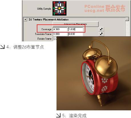 2d 布置節點決定二維紋理在模型表面的分布,將 u 向 coverage 數值改為 4.3 ( 34.8/7.94 ≈ 4.3 )。