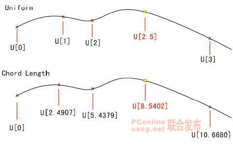 曲線 u 向參數(shù)值取決與編輯點(diǎn)的距離,而不是點(diǎn)的數(shù)量。