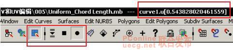 3 :拾取遮罩 curve point ,在曲線上拖動(dòng), maya 視窗頂部會(huì)顯示所在點(diǎn)的參數(shù),并隨著拖動(dòng)不斷變化。