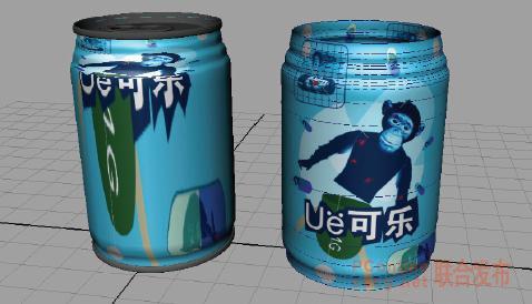 下圖用統一參數化創建的可樂罐,因為參數線不均勻引起貼圖拉伸,從視圖和渲染圖中都可看出來。