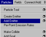現在為這個 plane 加上粒子嘍,先按 f4 ,在選擇 particles/add emitter, 如下圖所示