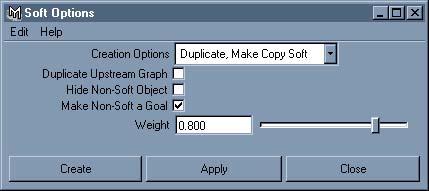 1 、石頭(暫且將石頭命名為 boulder )從小山丘上滾下來,會帶起很多灰塵。我們現在實現這種效果。我們做個石頭(命名為 boulder ),進入 dynamics 主菜單,給石頭加 active rigid body 和 gravity field 效果。然后建個( plane )平面,給 plane 加個 passive rigidbody 。再選擇附加了 rigidbody 效果的石頭,再給它個 softbody (如下圖),選擇 duplicate, make copy soft ;勾選 ''hide non-soft object ,勾選 'make non soft a goal' ,然后設置 weight 為 0.8 ,點 create 按鈕。我們打開 outliner ,選擇石頭中的( copy0boulder )節點,將它隱藏,粒子不要隱藏,我們只要看到 'soft boulder' 就行了。