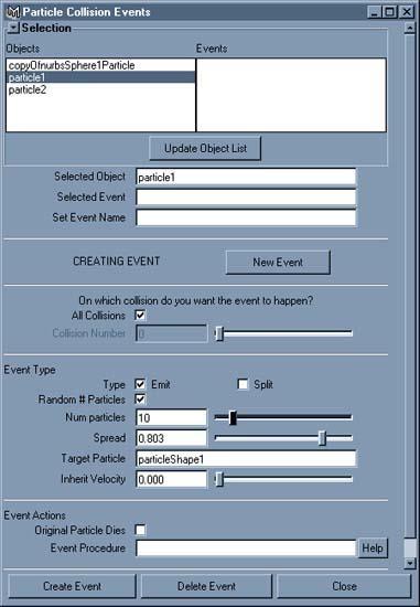 選擇 softbody particle 對象,打開 particles >particle collision events ,