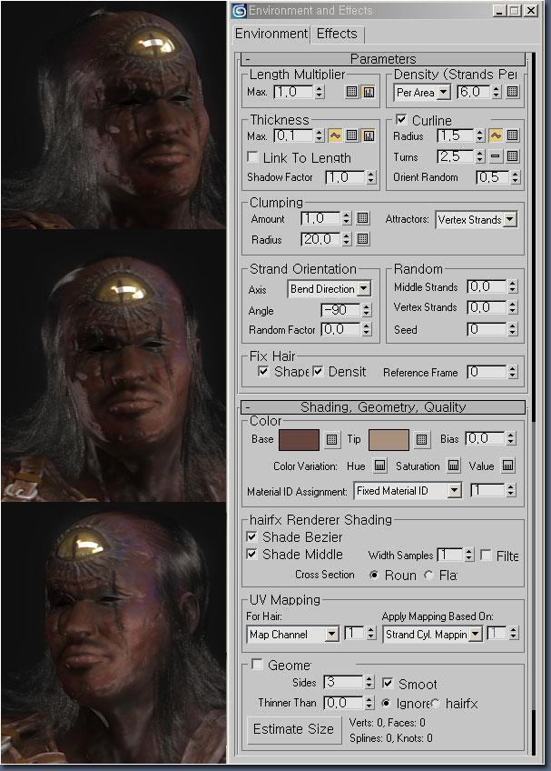hair fx 可以制作出非常真實(shí)的頭發(fā),如果我要進(jìn)行動畫,頭發(fā)要有適當(dāng)?shù)臄[動。 hair fx 是使用 enironment effects 。有石油如果你使用 vray 渲染,這個會占用大量的內(nèi)存。這里是我的 hair fx 的設(shè)置。