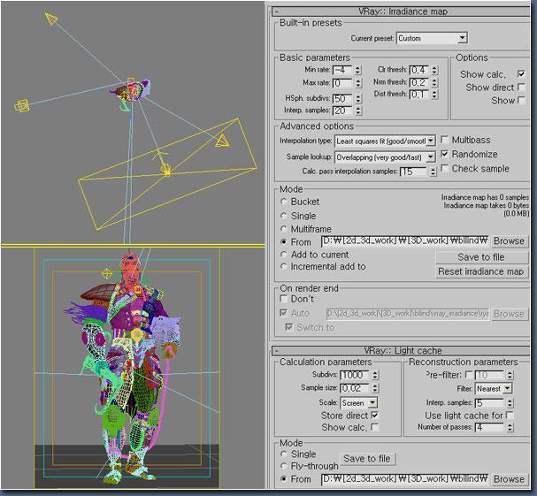 這是我的燈光設(shè)置。 vray 的 secondary calculation 使用了 light cache (其實(shí)就是原來 light map ,只是渲染所用時間減少了)。
