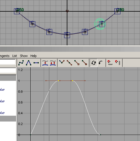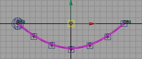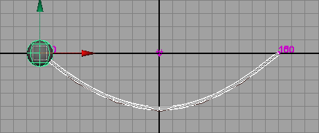 創建一個球 , 并與曲線一起設為成路徑動畫 . 在 graph editor 中設置動畫為 1-100 幀球向右 ,150-150 幀球向左 .