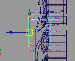 調整前面的 cv 點到如 (pic 21) 的效果,調整好后,選擇最外面的 isoparm 線,使用 surfaces>planar 命令閉合這個車輪蓋子 (pic 22).