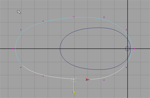 選擇 create/nurbs primitives/circle 創建一個環形線,在右側的 makenurbcircle1 創建屬性 sections (段數)調節到 12 左右,然后按 ctrl+d 復制該環形線并放大,將大的環形線向邊上移動一些,大的環形線就是花瓣的外形,小的環形線則是花瓣的根部,為了以后便于調節造型,再復制一條環形線,放縮到中間大小,調節它們的形態如圖。