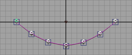 打開 7 個(gè)立方體的 selection-handles, 并創(chuàng)建 cv 曲線 , 每個(gè) cv 都 snap 到 selection handle 上 , 這樣就有了 7 個(gè) cv 點(diǎn) .