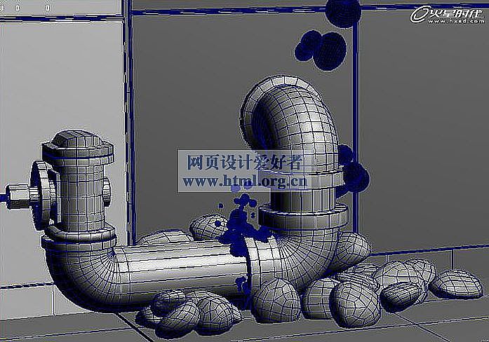 砂礫是比較棘手的模型中的一個(gè)!所以,我想用動(dòng)力學(xué)來(lái)分布它。我創(chuàng)建了一個(gè)發(fā)射器Particle setup,這在后面會(huì)幫到我。隨著每個(gè)對(duì)象的碰撞(管道,地板和瓷磚),礫石非常完美的分布在地面和管道中。為了產(chǎn)生一些隨機(jī)的效果,我用旋轉(zhuǎn)和縮放對(duì)礫石編輯了一下。(圖07)
