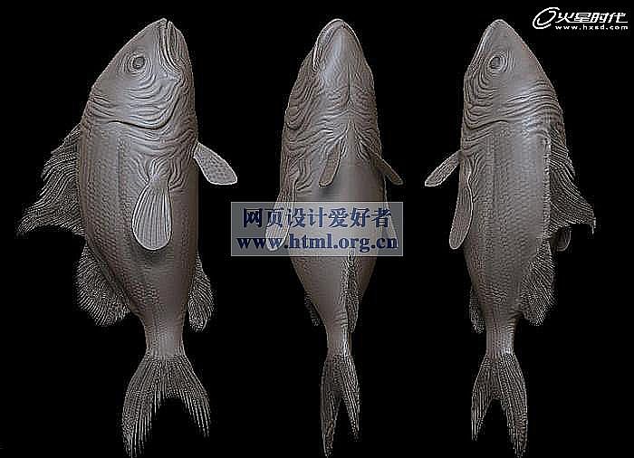 現(xiàn)在在場(chǎng)景的中心制作一條很普通的熱帶魚(yú)。正如我所說(shuō),我用了很少的參考去了解它的結(jié)構(gòu)和皮膚紋理。我還在相機(jī)的正視圖中導(dǎo)入了參考圖片來(lái)更好的掌握大形。首先做出一個(gè)魚(yú)的大形,然后再在ZB中添加細(xì)節(jié)。(圖09、圖10)