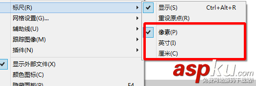 6、這里我們就能看見我們需要改的標尺的單位,我們想改什么該什么單位