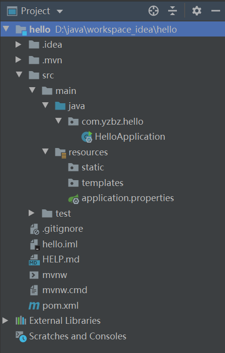 8.創建一個包為com.yzbz.hello.controller,在里面創建一個HelloController(!!!注意,由于Controller是被啟動類所管理的,所以啟動類的controller應該放在啟動類的子目錄上