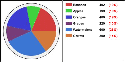 假設你在一家從事銷售新鮮水果的公司上班,公司出售的水果包括:蘋果、桔子、葡萄。現在你的老板想用一個餅狀圖形顯示每一種水果的總出售量,餅狀圖形能使每一種產品的銷售情況一目了然,老板可以迅速掌握公司的產品成交情況。