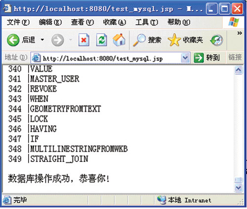 通過以上步驟就實現了jsp與mysql數據庫的連接。 (ccw)