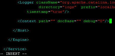 vi /usr/local/jakarta-tomcat-5.0.29/conf/server.xml如下圖所示:增加這一行: