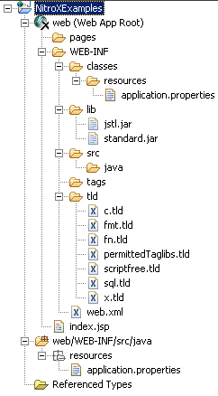 上面的步驟中,我們已經完成了servlet容器的設置,現在可以開始運行例子了。展開appxplore視圖的nitroxexamples節點,在index.jsp節點上單擊右鍵,在彈出的上下文菜單中選擇run asàrun…。