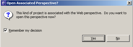 點擊next按鈕進入java環境變量設置,我們使用系統默認設置,單擊finish按鈕完成web工程的創建工作。這是會有一個彈出窗口提示是否使用bea workshop jsp editor提供的web透視圖來打開新建的web工程,單擊yes按鈕完成最后的工作。