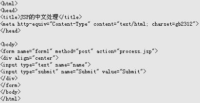 如果submit.jsp提交英文字符能正確顯示,如果提交中文時就會出現(xiàn)亂碼。原因:瀏覽器默認(rèn)使用utf-8編碼方式來發(fā)送請求,而utf-8和gb2312編碼方式表示字符時不一樣,這樣就出現(xiàn)了不能識別字符。解決辦法:通過request.secharacterencoding("gb2312")對請求進(jìn)行統(tǒng)一編碼,就實現(xiàn)了中文的正常顯示。修改后的process.jsp代碼如下: