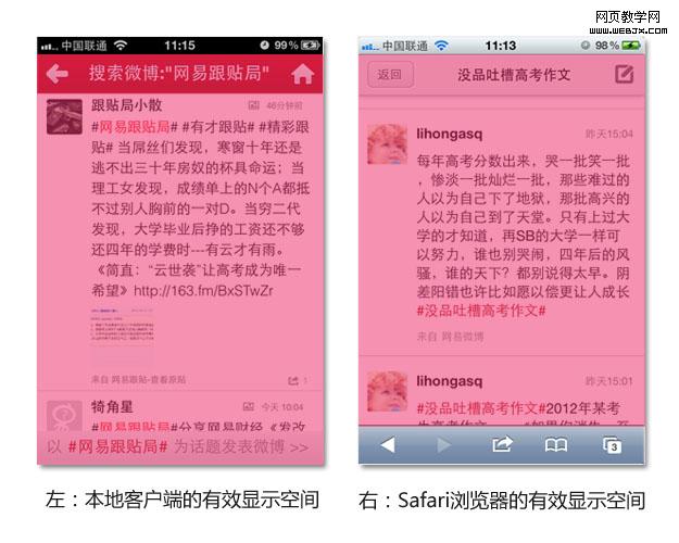 網(wǎng)易微博Web App(本文內(nèi)均指手機(jī)端)有別于Web端產(chǎn)品,與本地客戶端也有所差異。