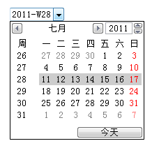 week是專門用來輸入周(星期)的文本框,W后面所跟的數字表示此周是當年的第幾個星期。在日歷中只能選擇一周,同樣不能選擇某一天。
